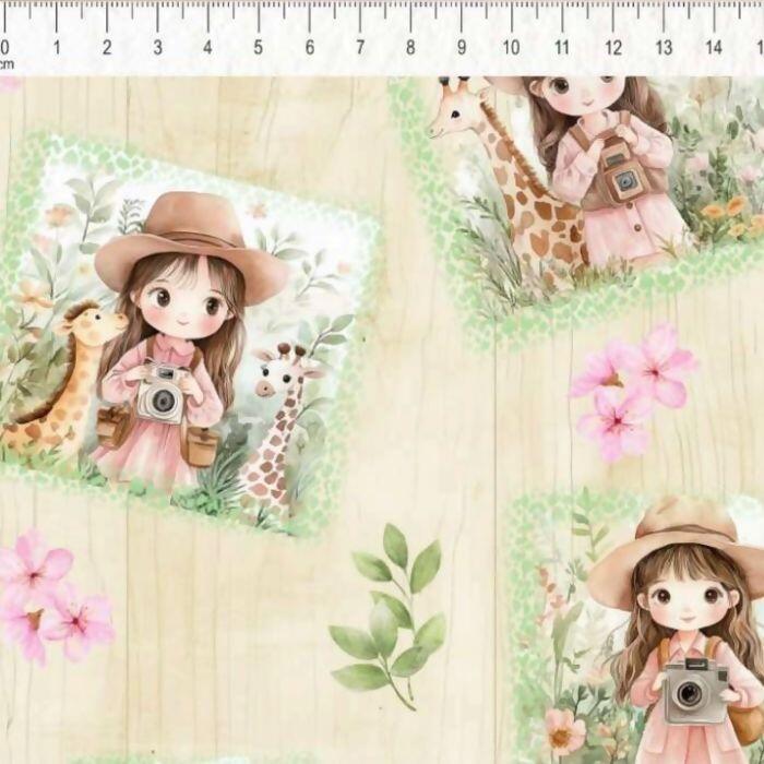Descrição Tecido Tricoline Digital Safari Quadros Meninas