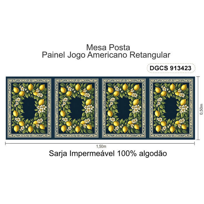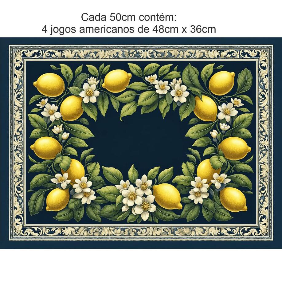 Descrição Tecido Tricoline Digital Sarja Jogo Americano Limão Siciliano