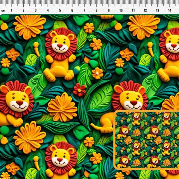 Descrição Tecido Tricoline Digital Selva Divertida Leão
