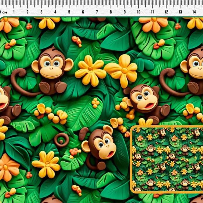 Descrição Tecido Tricoline Digital Selva Divertida Macaco