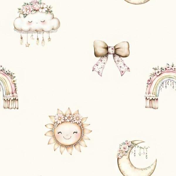 Descrição Tecido Tricoline Digital Sol Lua e Arco Íris