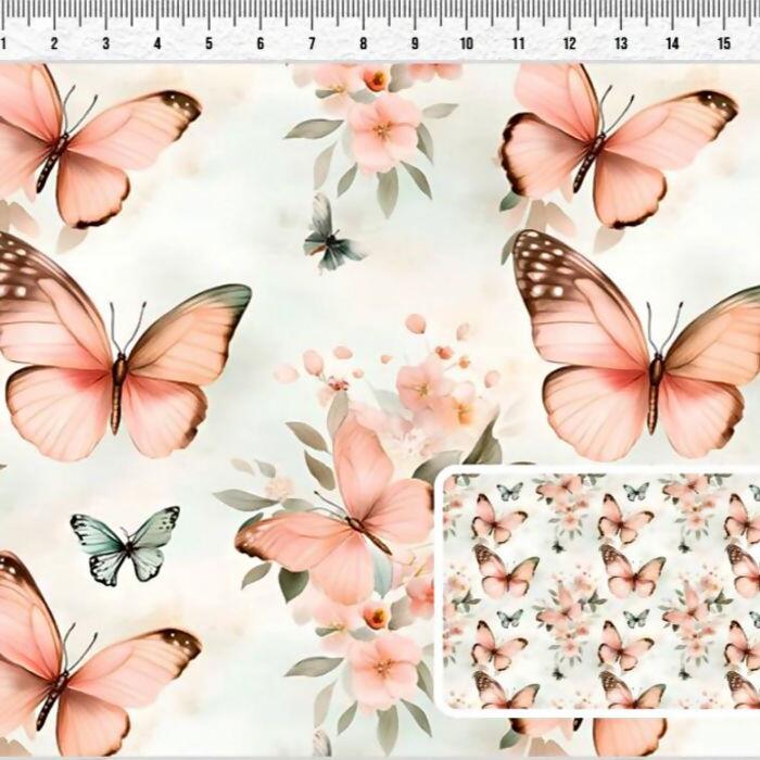 Descrição Tecido Tricoline Digital Spring Blush Borboletas