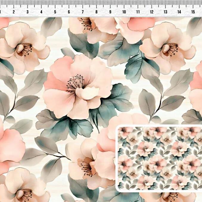 Descrição Tecido Tricoline Digital Spring Blush Floral Cheio