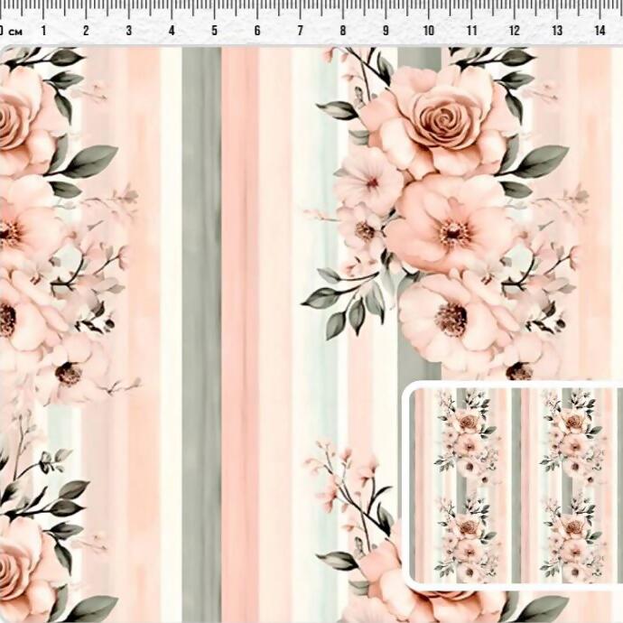 Tecido Tricoline Digital Spring Blush Flores e Listras