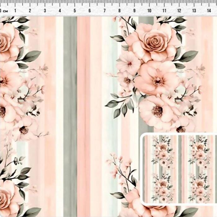 Descrição Tecido Tricoline Digital Spring Blush Flores e Listras
