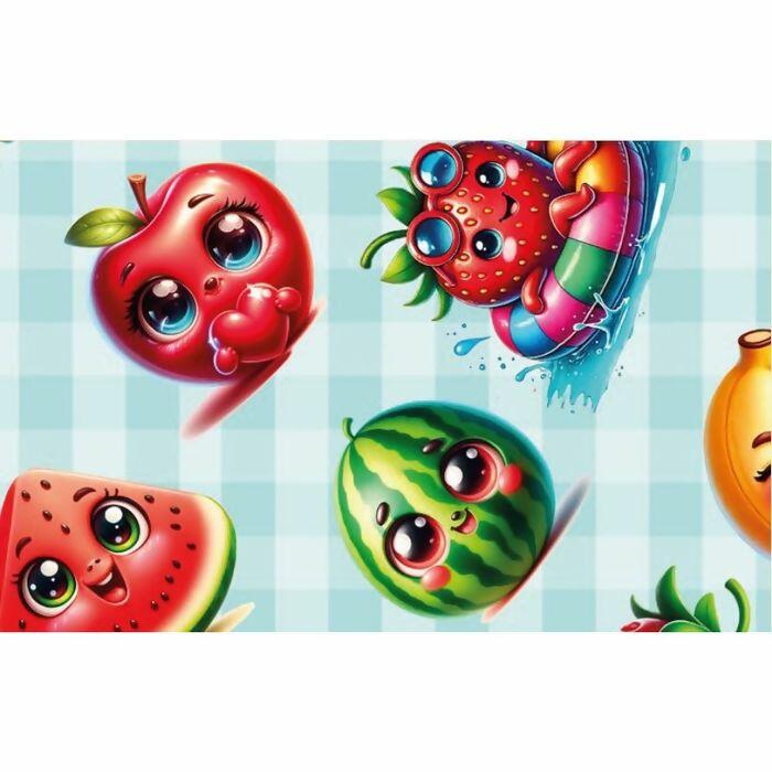 Descrição Tecido Tricoline Digital Super Frutas Animadas