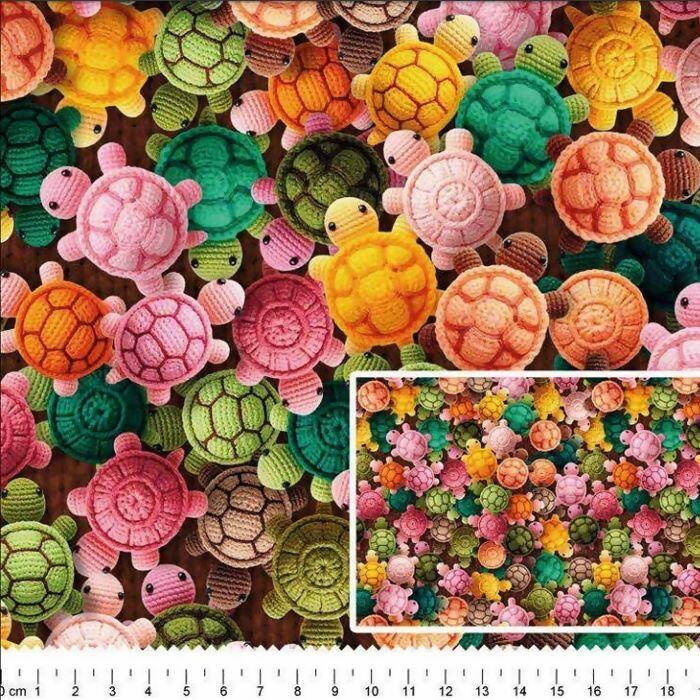 Descrição Tecido Tricoline Digital Tartarugas Coloridas