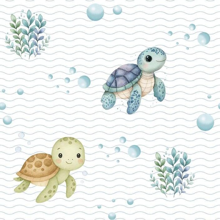 Descrição Tecido Tricoline Digital Tartarugas Fundo Azul