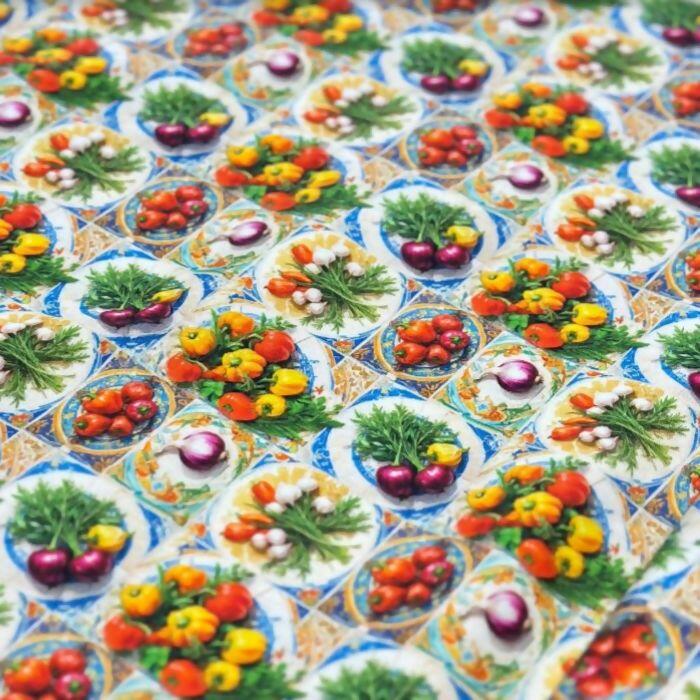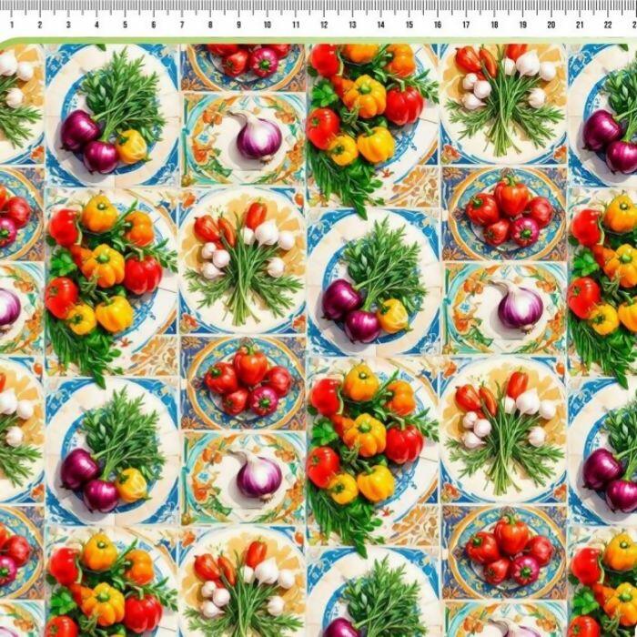 Descrição Tecido Tricoline Digital Temperos Azulejo
