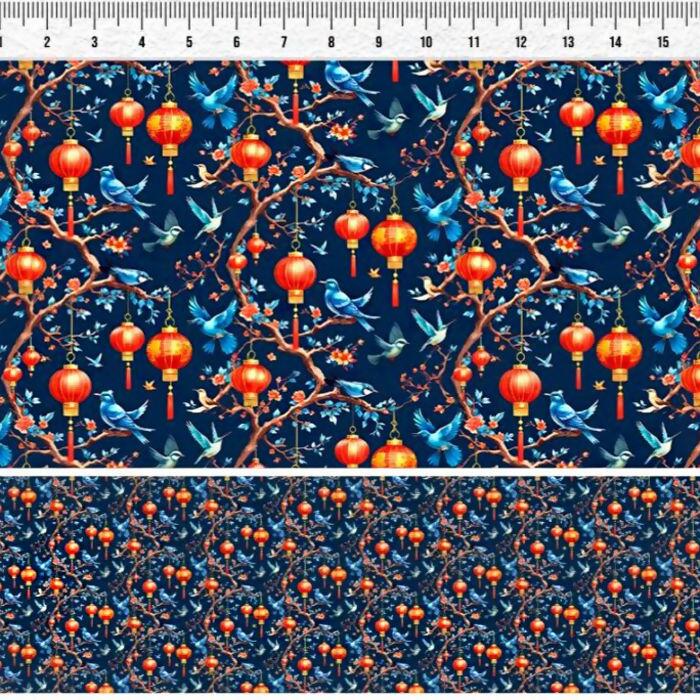 Tecido Tricoline Digital Tesouros Oriente Luminárias Azul