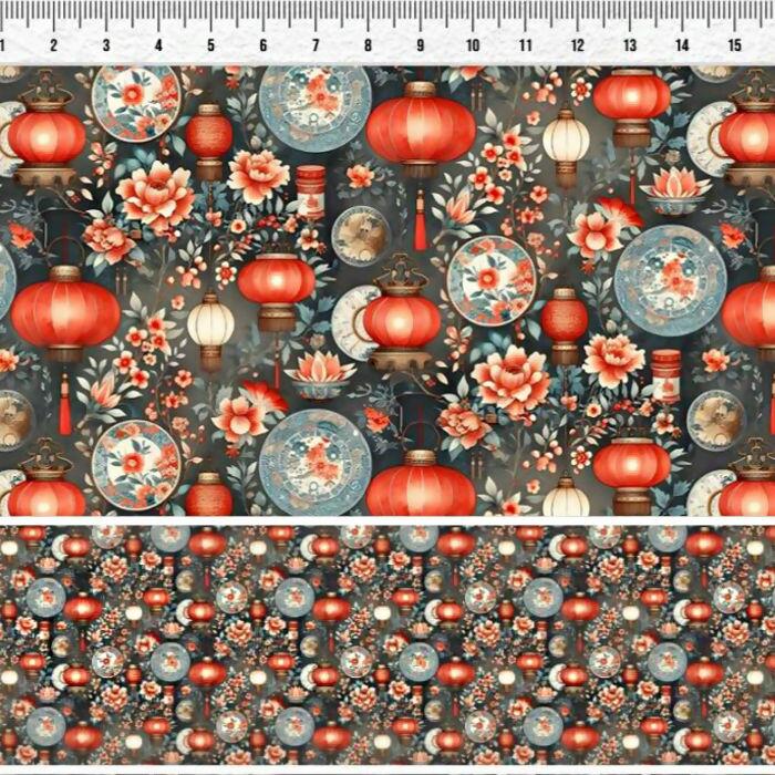 Tecido Tricoline Digital Tesouros Oriente Luminárias