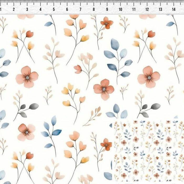 Tecido Tricoline Digital Tiny Pétalas Ramos