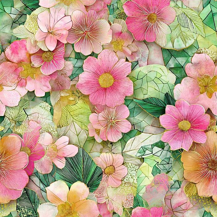 Descrição Tecido Tricoline Digital TR Flores Fundo Vitral