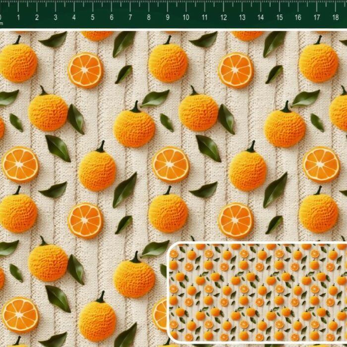 Tecido Tricoline Digital Tricô Laranja Fundo Bege