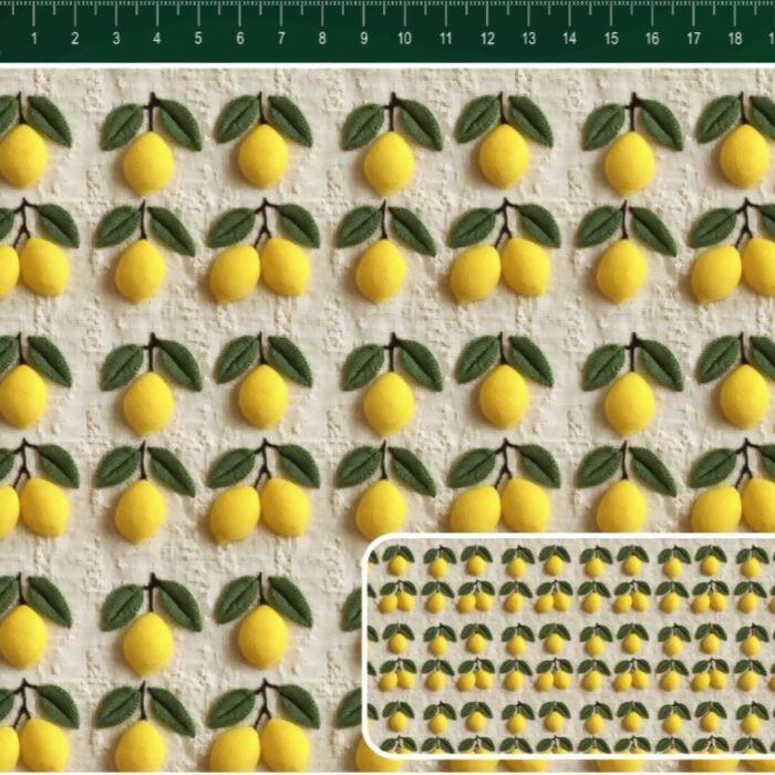 Descrição Tecido Tricoline Digital Tricô Limão Fundo Bege
