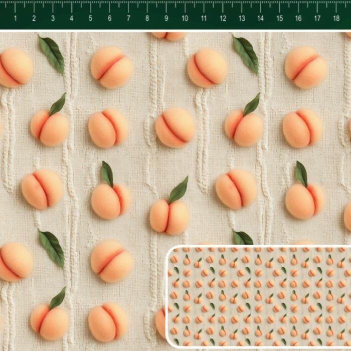 Tecido Tricoline Digital Tricô Pêssego Fundo Bege