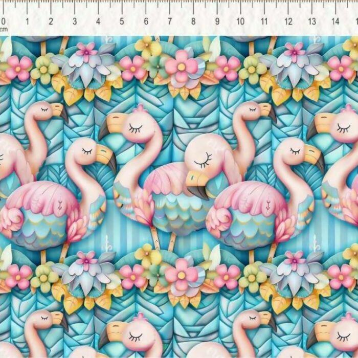Descrição Tecido Tricoline Digital Tropical Flamingos