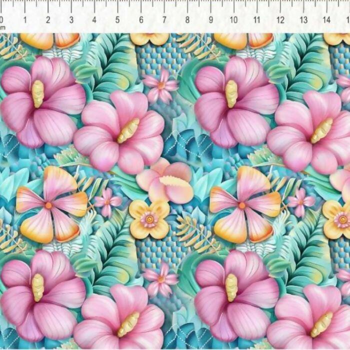 Tecido Tricoline Digital Tropical Flores Coloridas