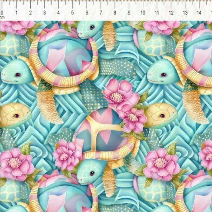 Descrição Tecido Tricoline Digital Tropical Tartarugas