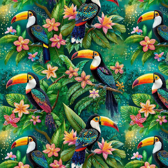 Tecido Tricoline Digital Tucanos Fundo Folhagem