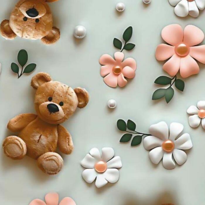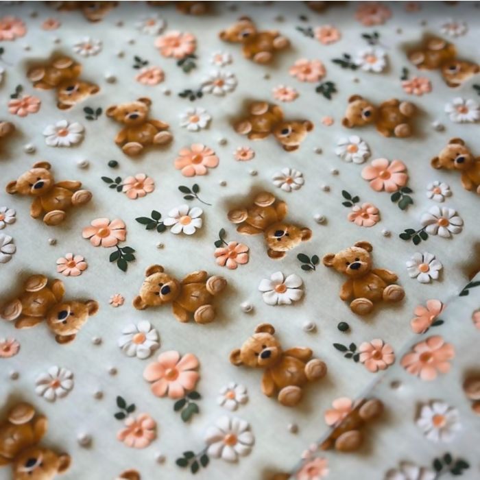 Descrição Tecido Tricoline Digital Ursinho Floral
