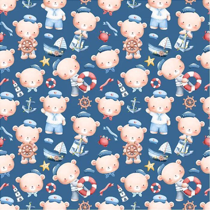 Descrição Tecido Tricoline Digital Ursinho Mar