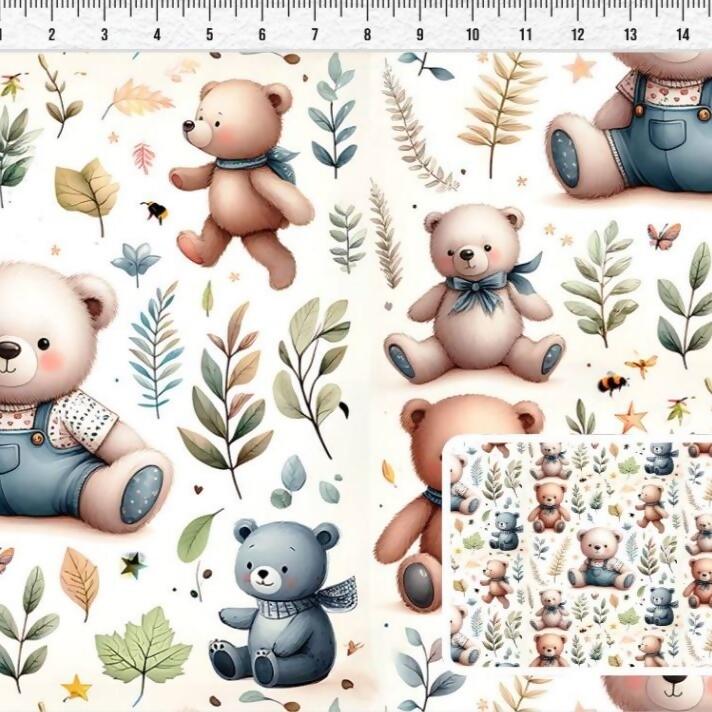 Descrição Tecido Tricoline Digital Ursos Folhagem