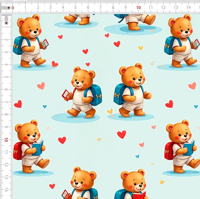 Descrição Tecido Tricoline Digital Ursos Fundo Azul Claro