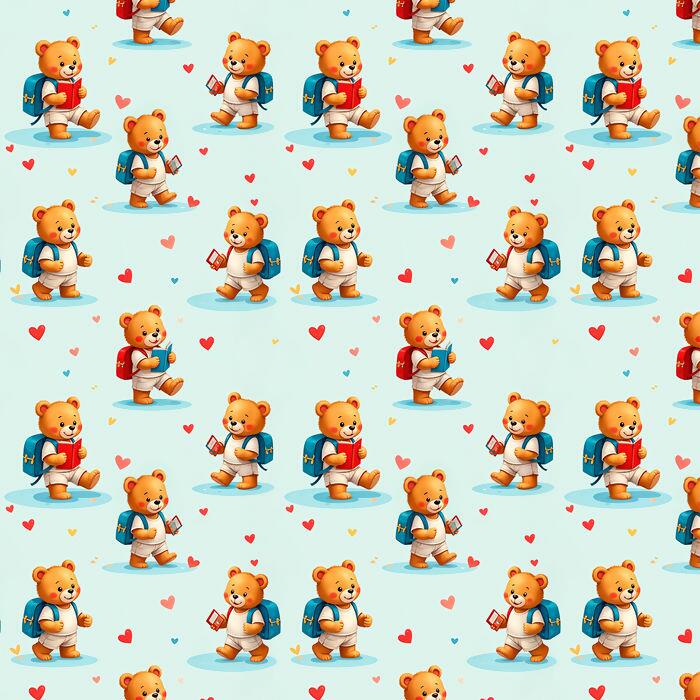 Tecido Tricoline Digital Ursos Fundo Azul Claro
