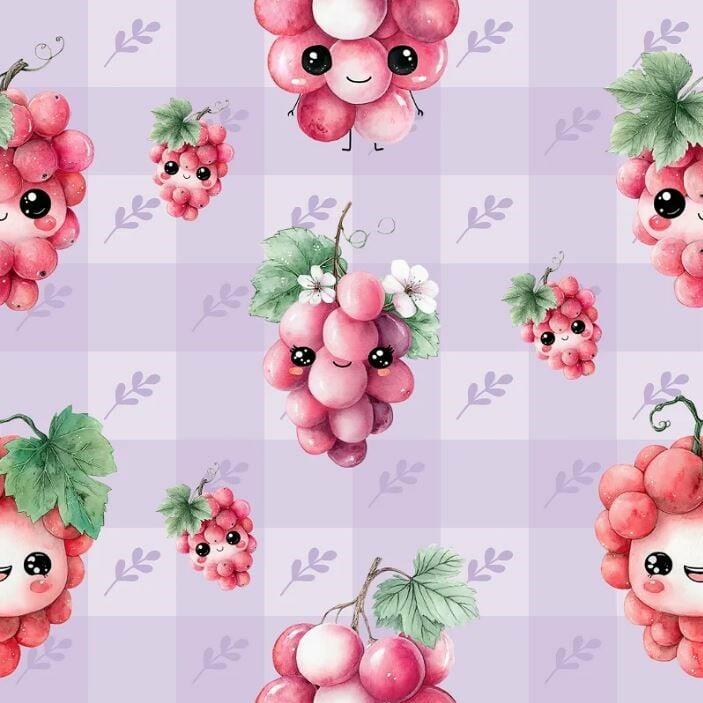 Descrição Tecido Tricoline Digital Uvas Fundo Xadrez