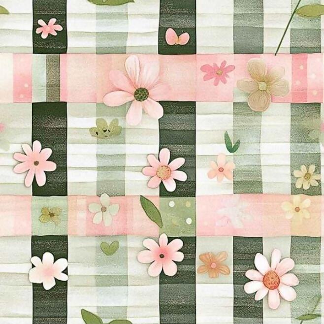Descrição Tecido Tricoline Digital Valentina Listras e Flores
