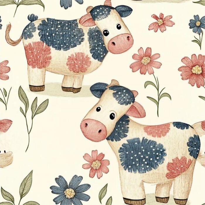 Descrição Tecido Tricoline Digital Vaquinhas Flores