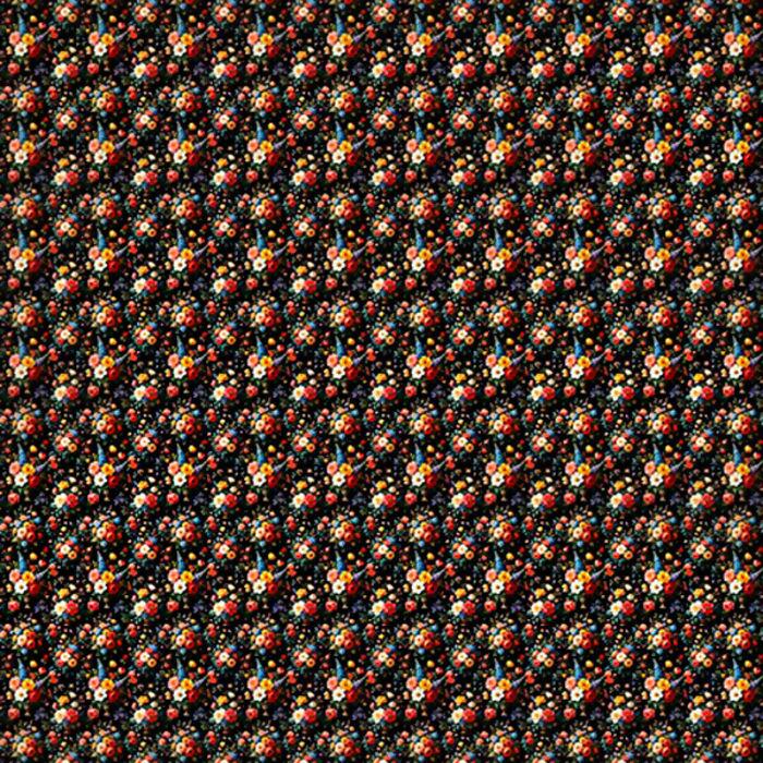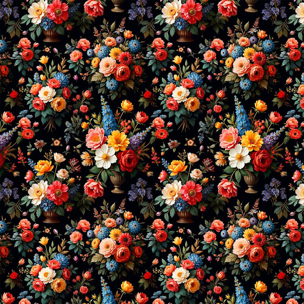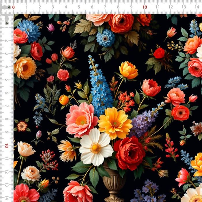 Descrição Tecido Tricoline Digital Vaso de Flores Fundo Preto