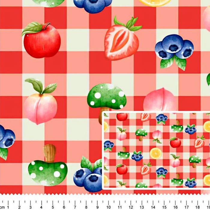 Descrição Tecido Tricoline Digital Vichy Frutas
