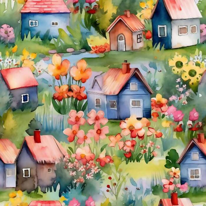 Descrição Tecido Tricoline Digital Vilarejo 3