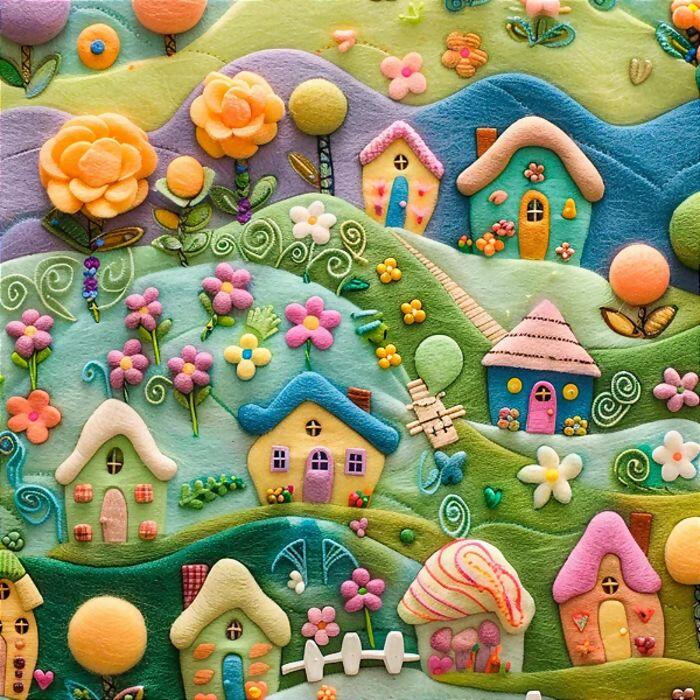 Descrição Tecido Tricoline Digital Vilarejo Feltro 1