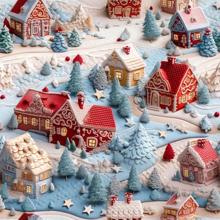 Tecido Tricoline Digital Vilarejos Natalinos 3