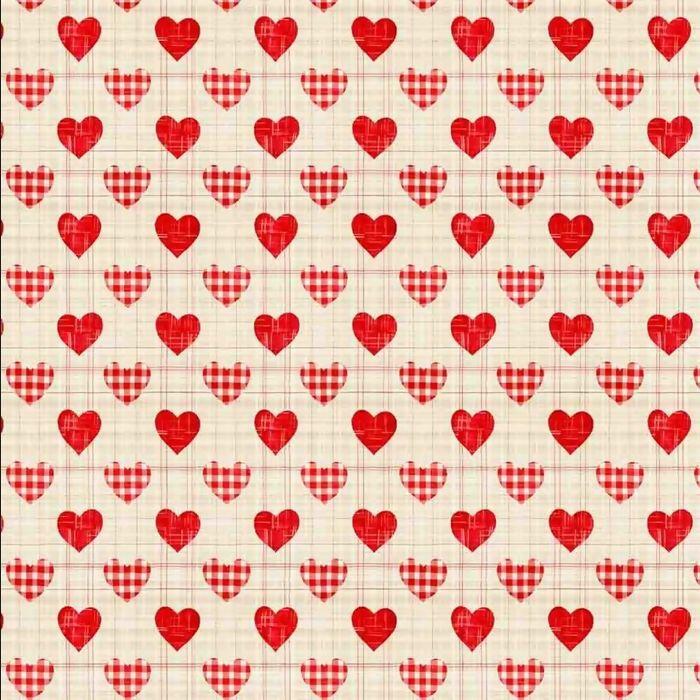 Descrição Tecido Tricoline Digital Vintage Coração Vermelho