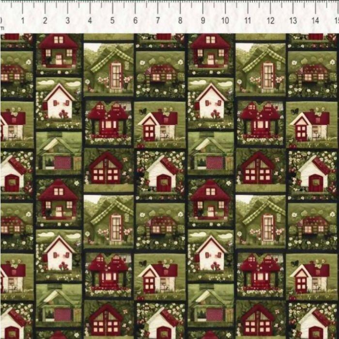 Descrição Tecido Tricoline Digital Viver Country Casas
