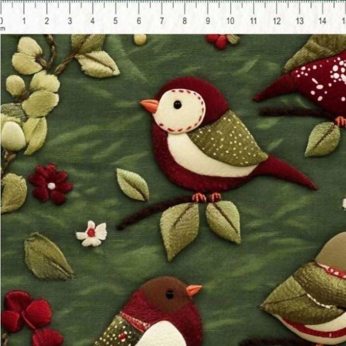Descrição Tecido Tricoline Digital Viver Country Pássaros Verdes