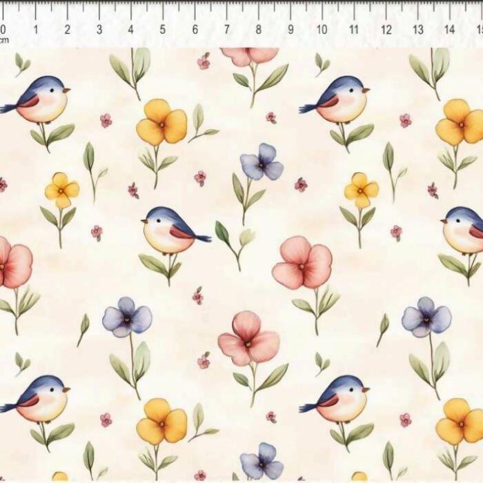 Descrição Tecido Tricoline Digital Voando Passarinhos