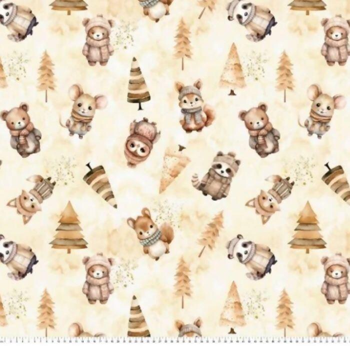 Tecido Tricoline Digital Wood Animals
