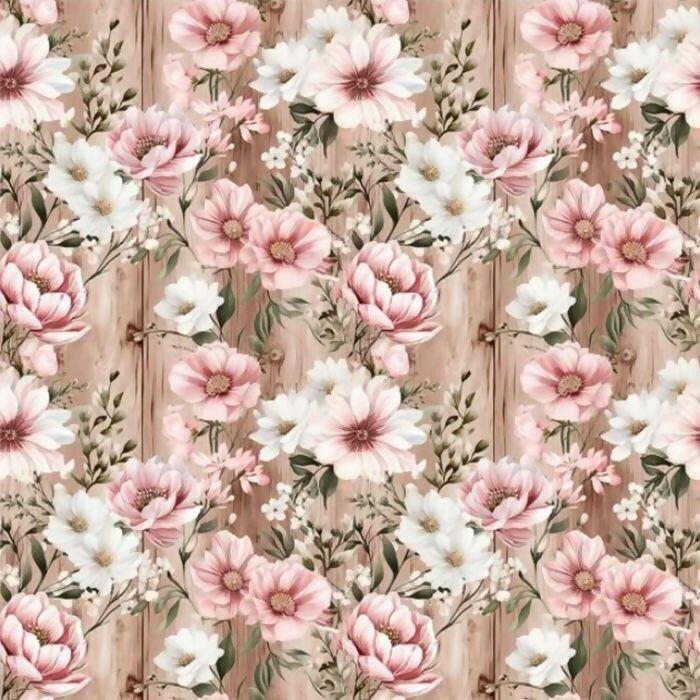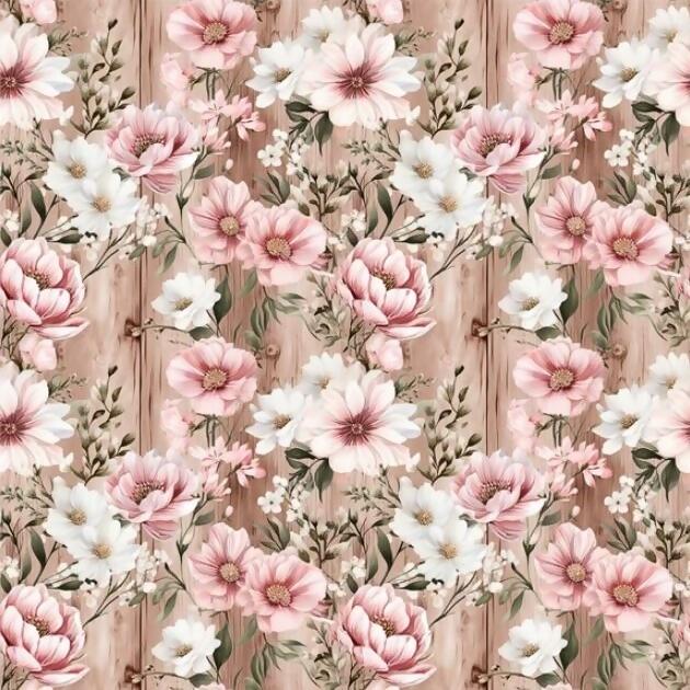 Tecido Tricoline Digital Wooden Pink Flores