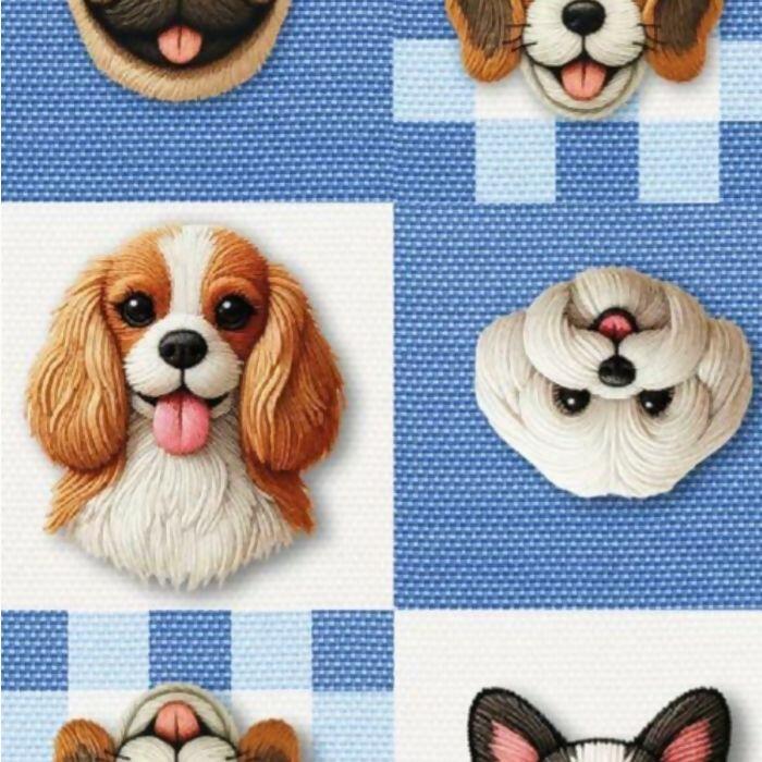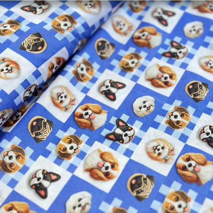 Tecido Tricoline Digital Xadrez Cachorros