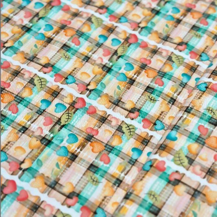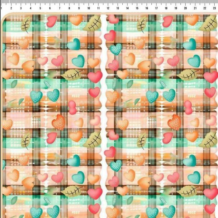 Tecido Tricoline Digital Xadrez Corações Coloridos