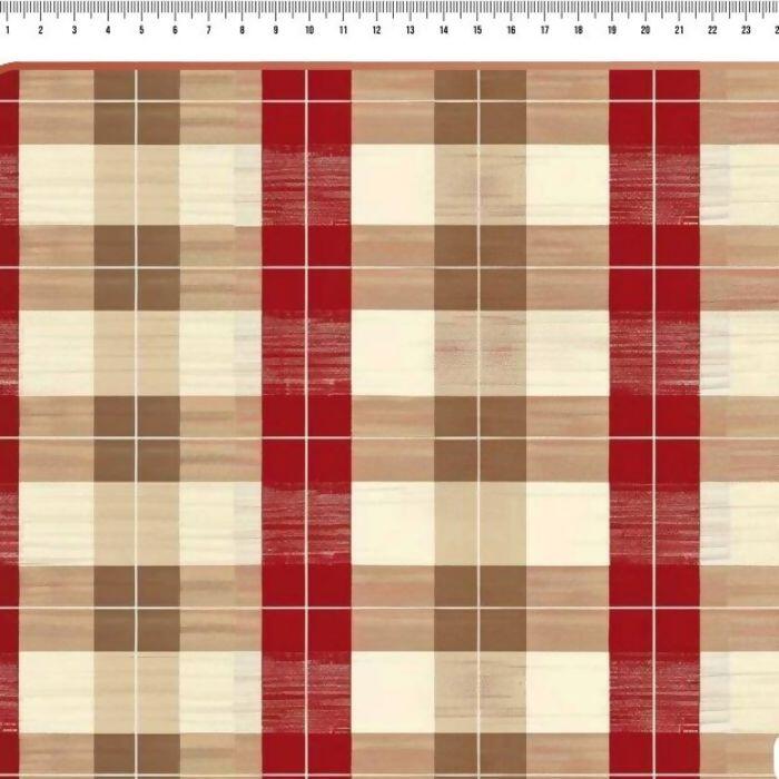 Descrição Tecido Tricoline Digital Xadrez Vermelho e Bege