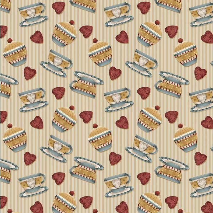 Tecido Tricoline Digital Xícaras Amor e Café Bege