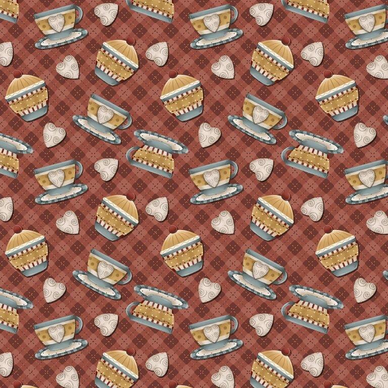 Tecido Tricoline Digital Xícaras Amor e Café Vinho