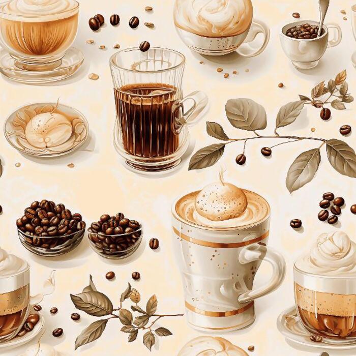 Tecido Tricoline Digital Xícaras Grão