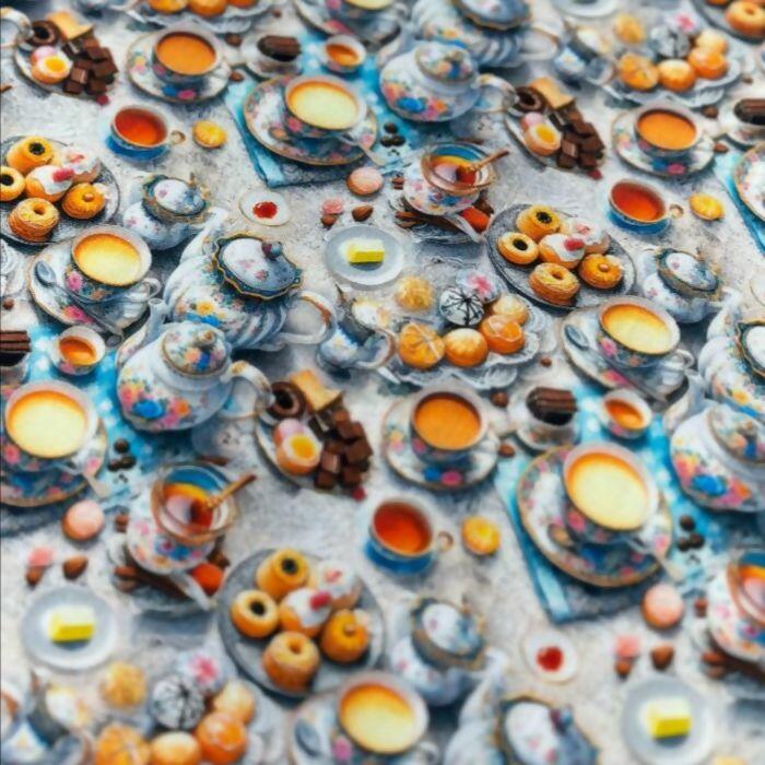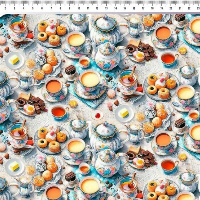 Tecido Tricoline Digital Xícaras